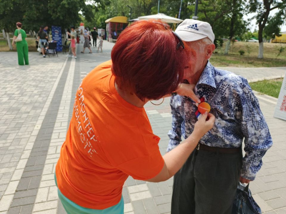 Для наших добровольцев отдельная радость - все кто посетил парк ушли с нашими значками и триколорами.