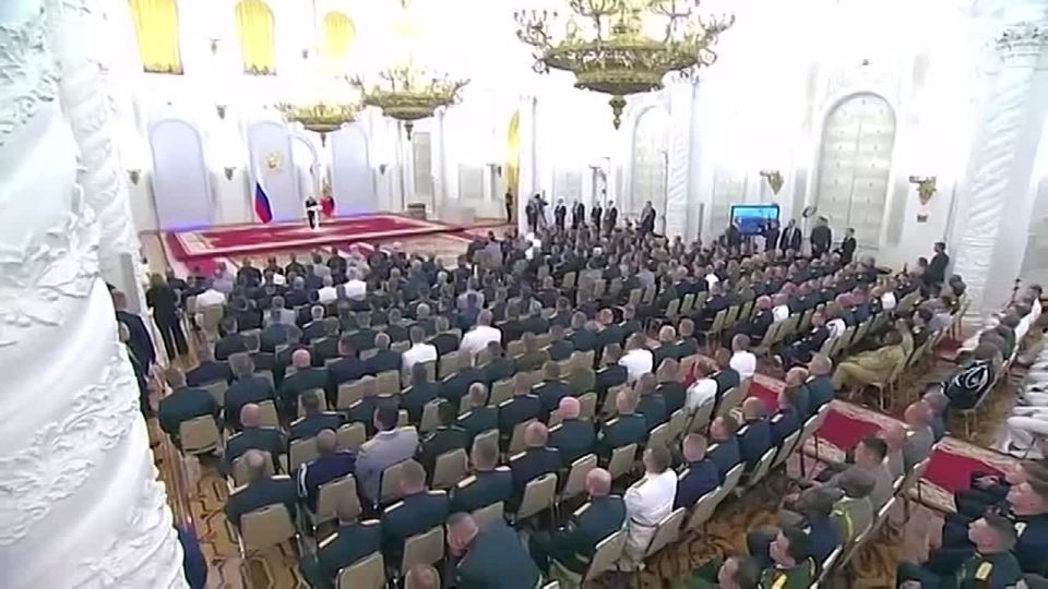 В Георгиевском зале Большого Кремлёвского дворца Владимир Путин проводит встречу с лучшими выпускниками военных вузов