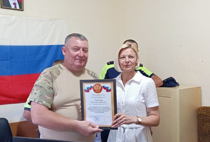 Благодарностями главы Чаплинского муниципального округа награждены два сотрудника МРЭО ГИБДД ГУ МВД России и шесть сотрудников отделения Госавтоинспекции ОМВД России «Чаплынское».