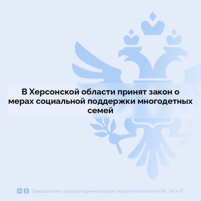 «Закон о поддержке многодетных семей — важный шаг в развитии системы социальной защиты региона. Теперь семьи с тремя и более детьми получат чётко прописанные льготы: бесплатный проезд, лекарства, школьные обеды, компенсации и землю. Всё — по удостоверению, без лишней бюрократии. Забота о семье — основа сильной Херсонщины», — отметил Губернатор Херсонской области Владимир Сальдо.