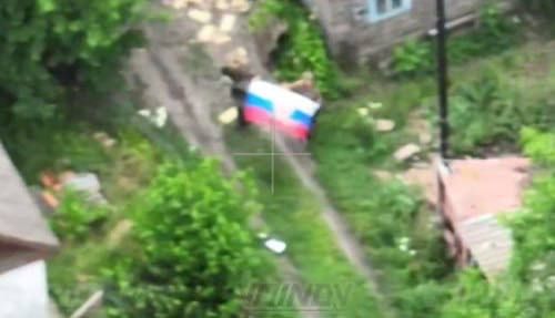 Флаг России в освобожденном поселке Поддубном на юге ДНР