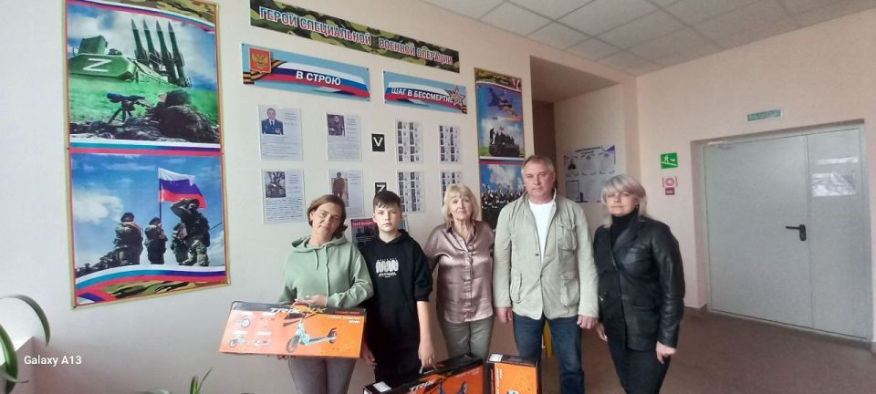 В Вадимской школе села Преображенка депутат Каланчакского муниципального округа Виталий Сметанин и председатель Всероссийского благотворительного фонда «Диворос» Татьяна Калиновская вручили подарки семье Героя СВО Александра Казланжи.