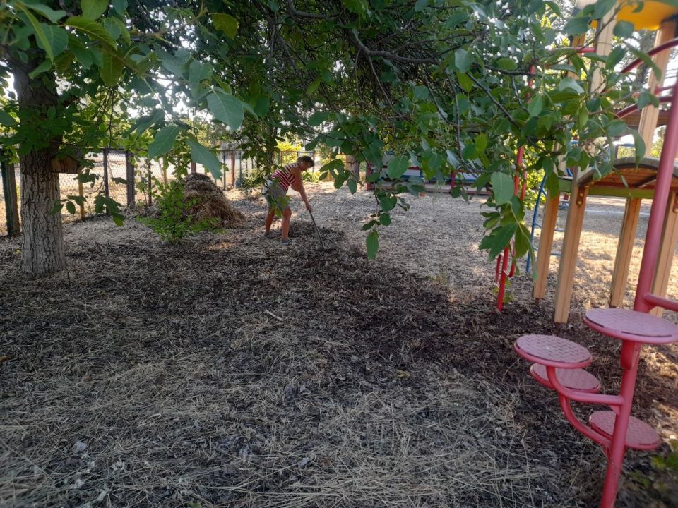 В селе Райское проводился покос и сгребание скошенной травы, работы по благоустройству на обочинах дорог, сбор мусора