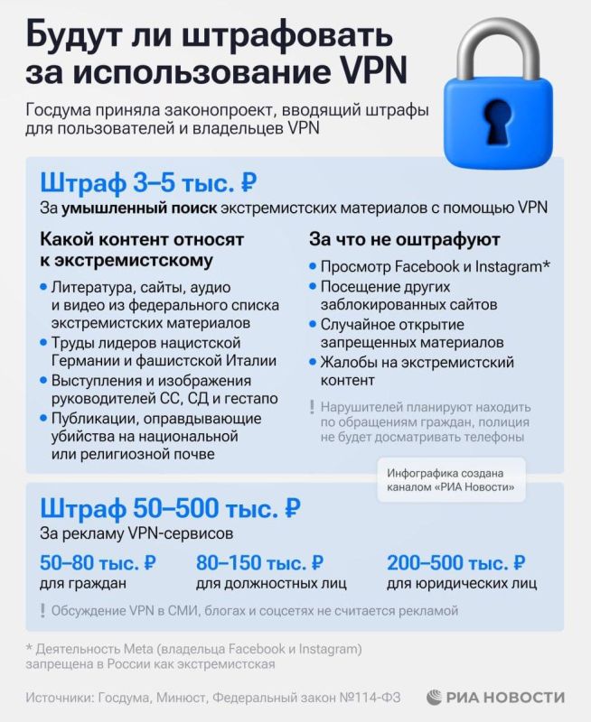 Также вводятся штрафы до 500 тысяч рублей за распространение рекламы VPN.