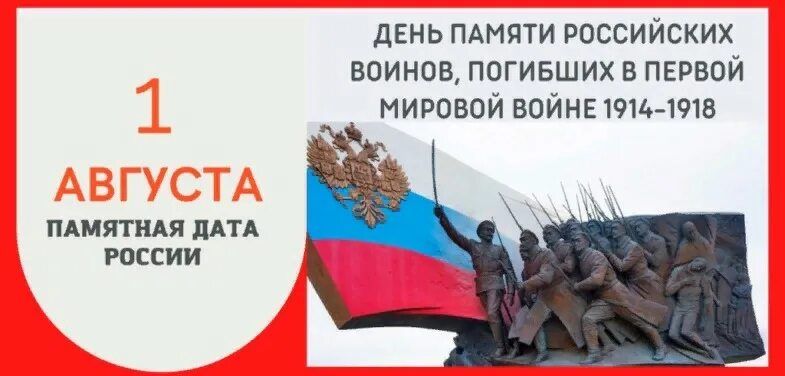 1 августа День памяти российских воинов, погибших в Первой мировой войнею