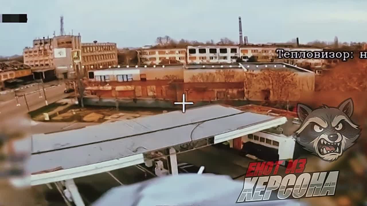 Енот из Херсона: Херсон. АЗС. Объект критической инфраструктуры. Наши операторы смогли добить дроном на оптоволокне до района городского ЖД вокзала и дальше
