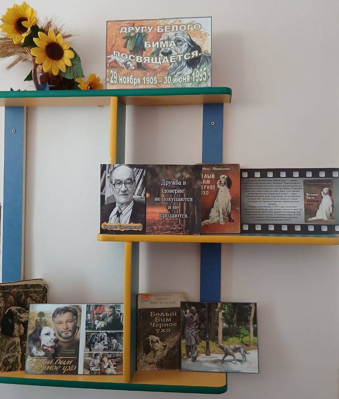 В библиотеке №2 г. Новая Каховка открыта книжная выставка «Другу Белого Бима посвящается…». Она приурочена к 120-летию со дня рождения известного русского писателя Гавриила Николаевича Троепольского (29.11.1905 – 30.06.1995).