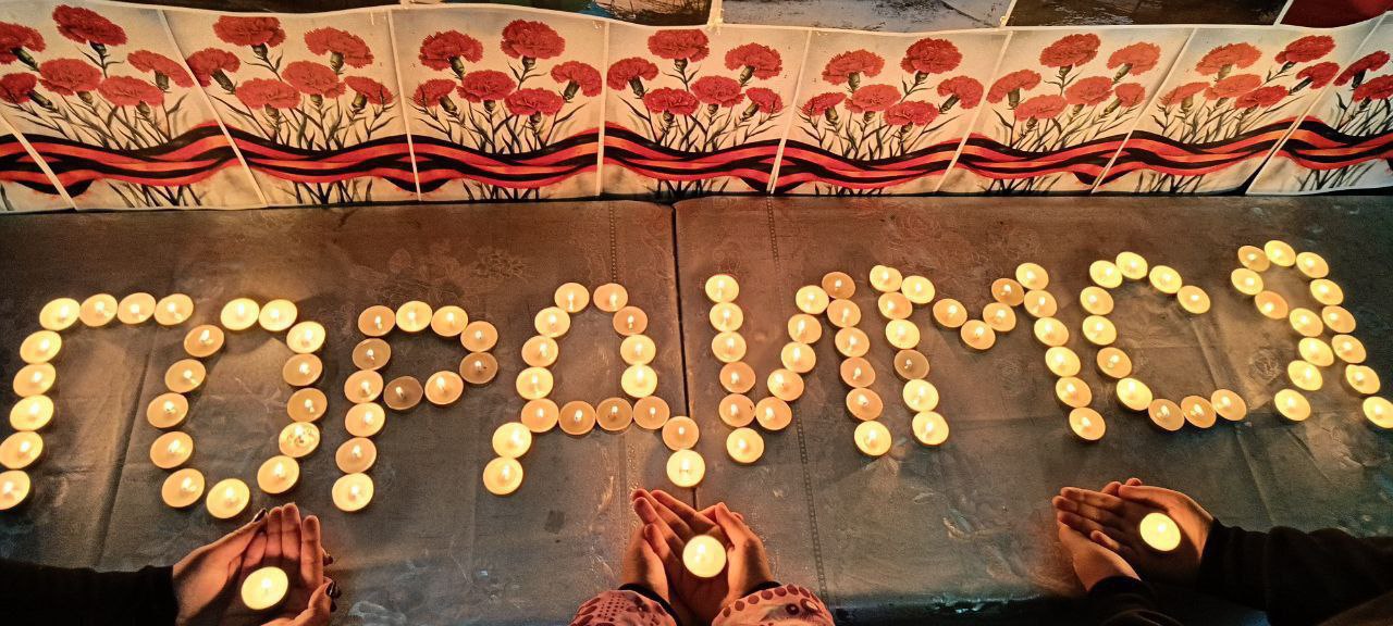 В библиотеке зажгли свечи памяти с надписью "Гордимся".