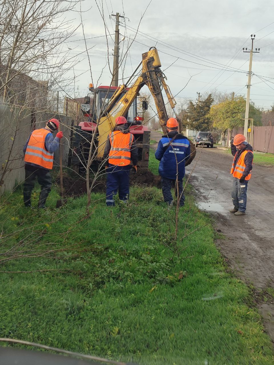 Ещё один оперативный выезд был совершён в село Шевченко на одноимённую улицу, где также произошёл порыв на месте врезки абонента. Силами семи работников авария была оперативно локализована с помощью монтажа обжимного хомута.