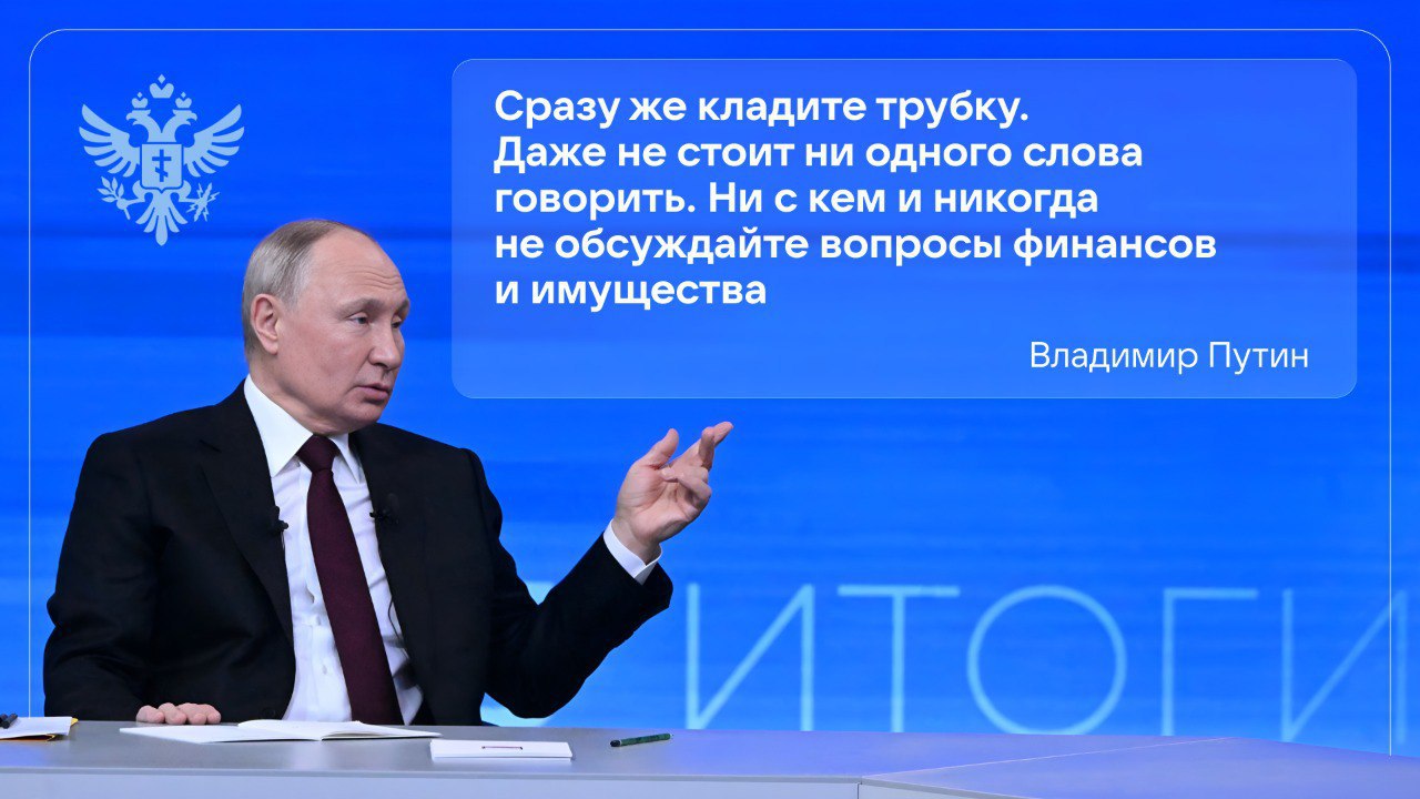 На традиционной прямой линии Владимир Путин затронул тему защиты от мошенников. Президент дал зрителям практические советы о том, как вести себя при контакте с злоумышленниками и избегать распространённых схем обмана.