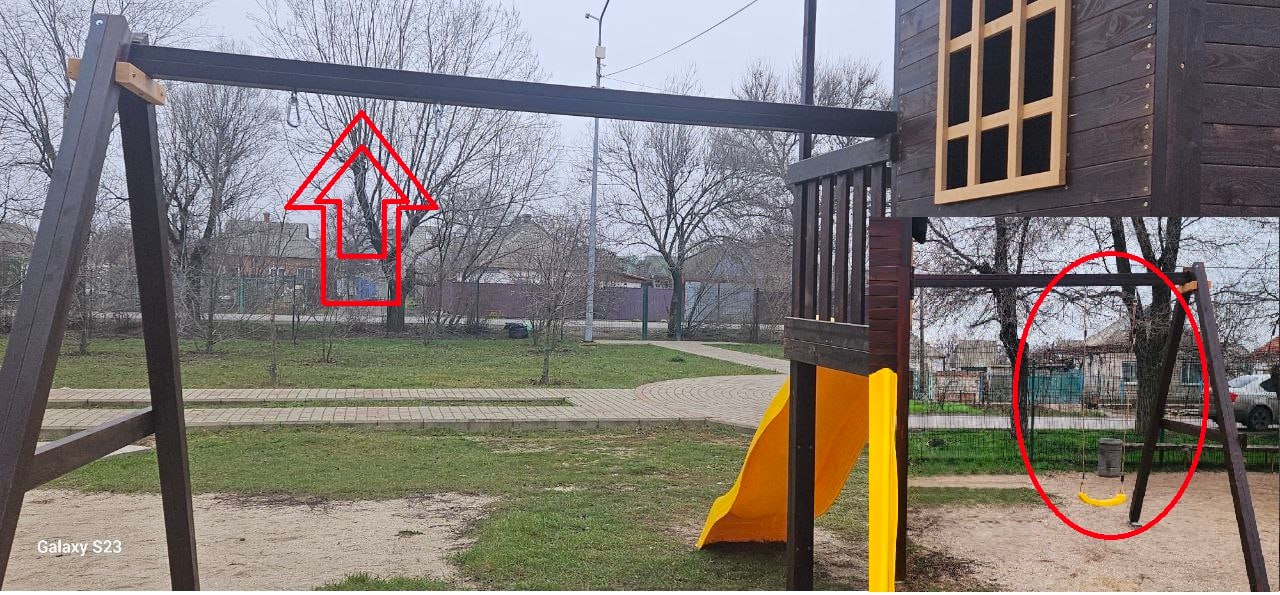 Однако буквально сразу после установки с площадки украдены детские качели и брусья.