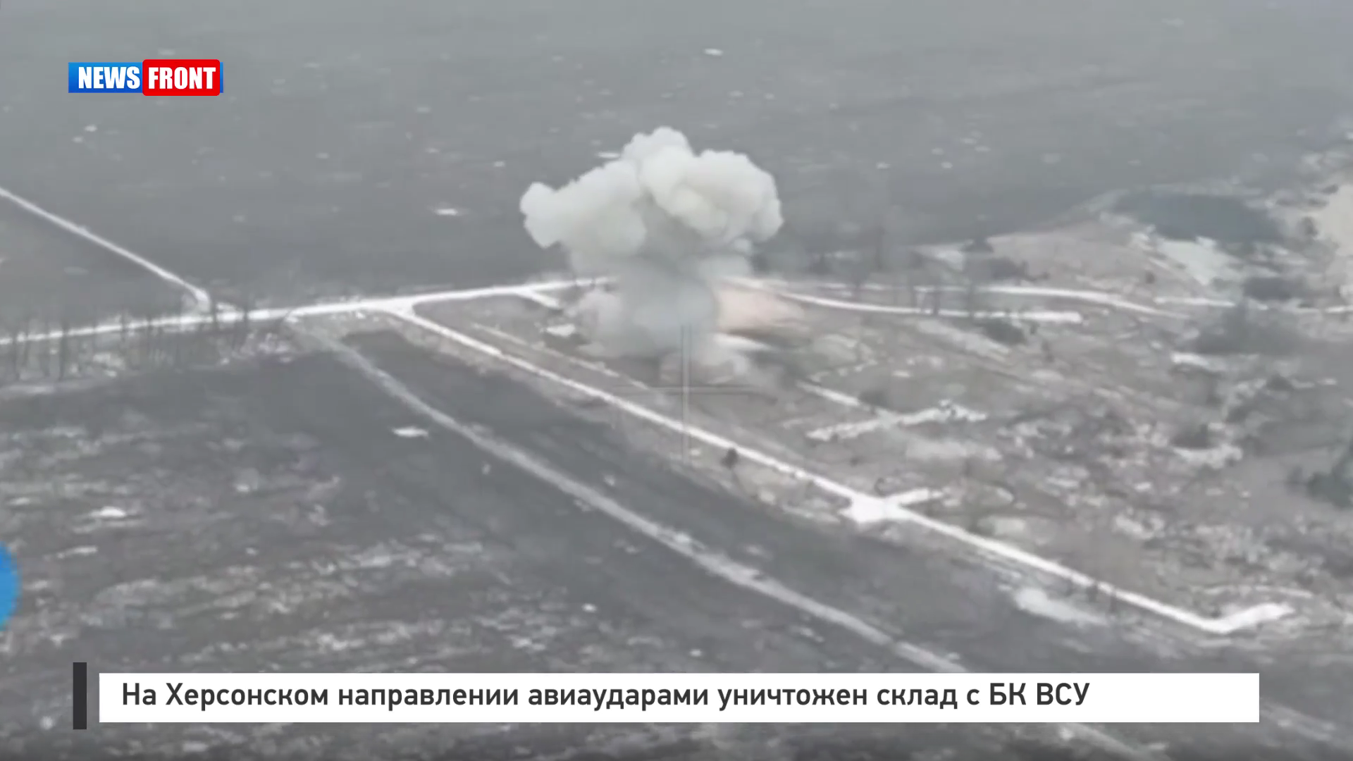 Экипажи Су-34 совершили бомбардировку вражеского склада с боеприпасами ВСУ в Херсонской области.
