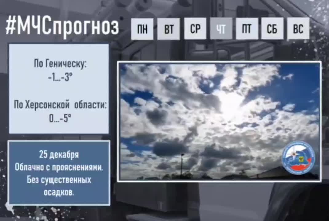 облачно с прояснениями. Без существенных осадков. Ветер северо-восточный с переходом днём на северный и северо-западный 6-11 м/с, по югу местами порывы до 14 м/с. Температура воздуха ночью -4...-9°, при прояснениях до -12°; днём 0...-5°.