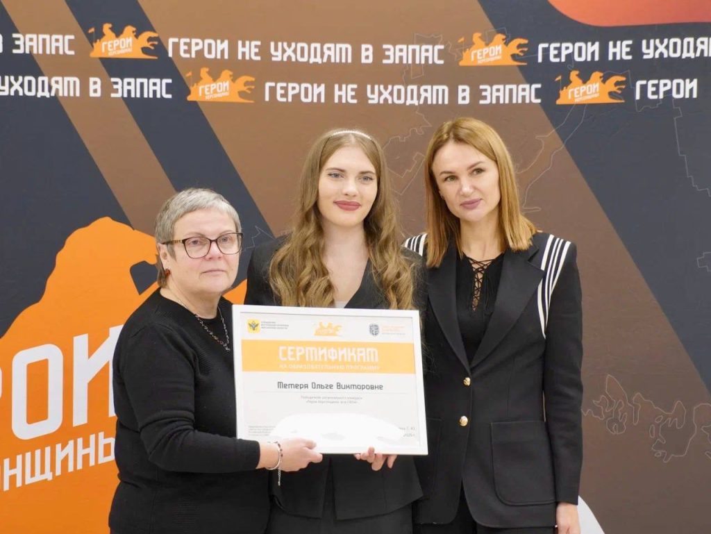 В зале Херсонской областной Думы состоялась встреча с финалистами второго конкурса «Герои Херсонщины: все СВОи». Председатель областной Думы Татьяна Томилина вручила им сертификаты на образовательную программу. Также на встрече присутствовали начальник Управления внутренней политики Оксана Калашникова и генеральный директор Центра развития компетенций региона Даниил Лаврешин.