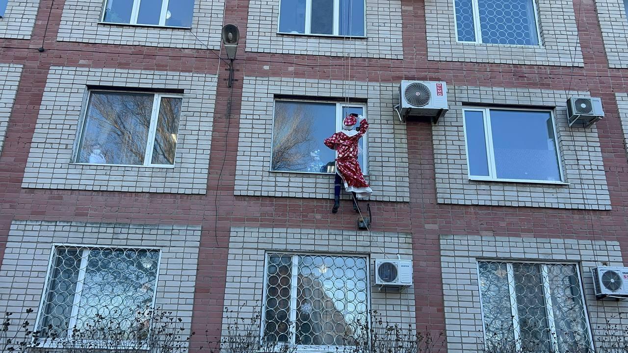 К юным пациентам на праздник пришли гости — Снегурочка вместе со своими друзьями-динозаврами. Они развлекали детей в ожидании главного виновника торжества — Деда Мороза. Волшебник не заставил себя долго ждать и спустился с крыши с мешком подарков наперевес, чтобы поприветствовать ребят.