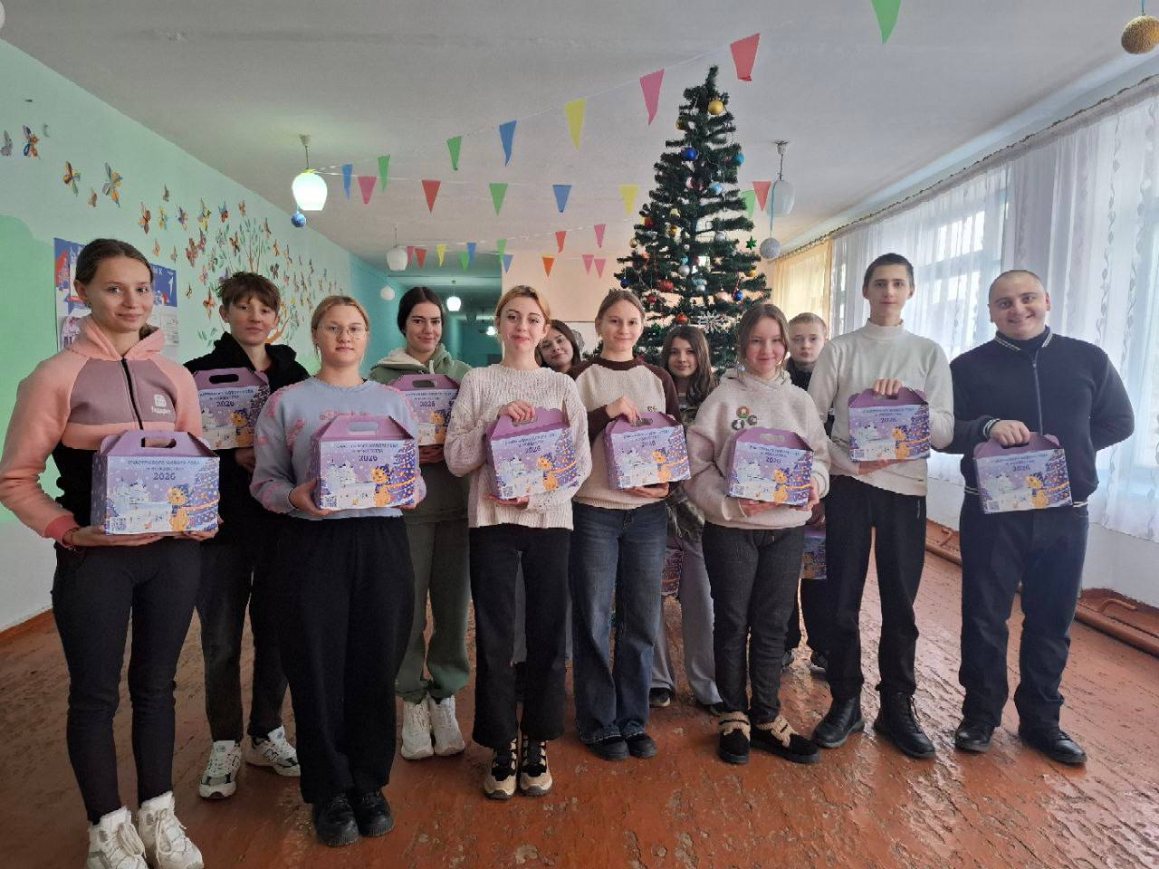 Яркие новогодние наборы уже начали свое путешествие по нашему округу, сегодня порадовали ребят Новодмитровской школы и детского сада « Солнышко».