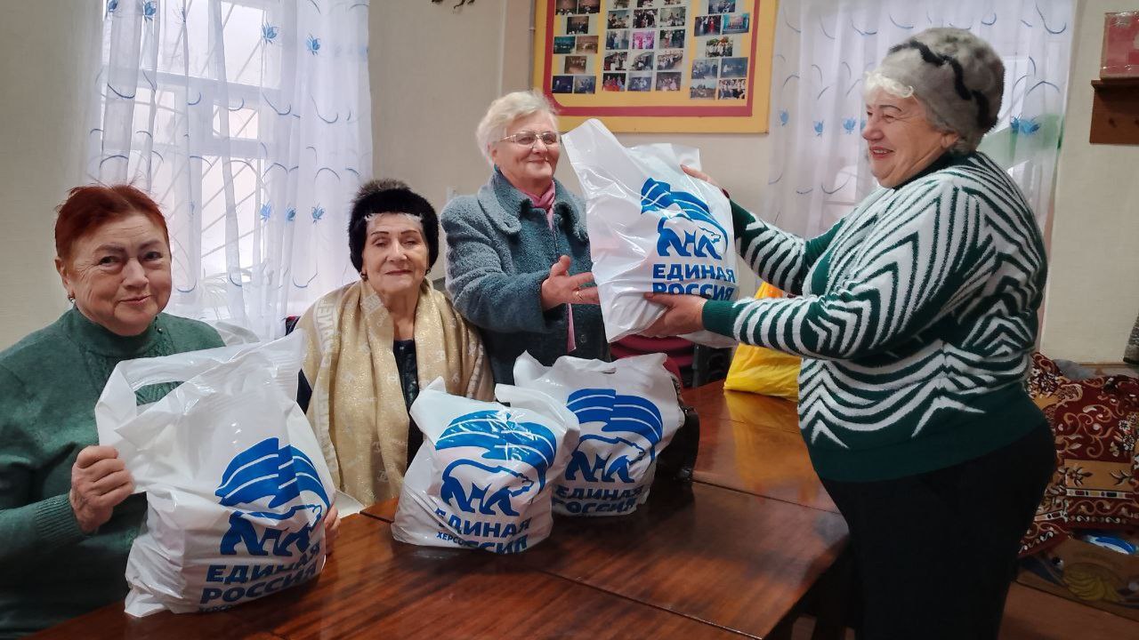 Волонтеры «Единой России» поздравили с наступающим Новым годом пенсионеров в Верхнем Рогачике и передали подарки Геническому совету ветеранов