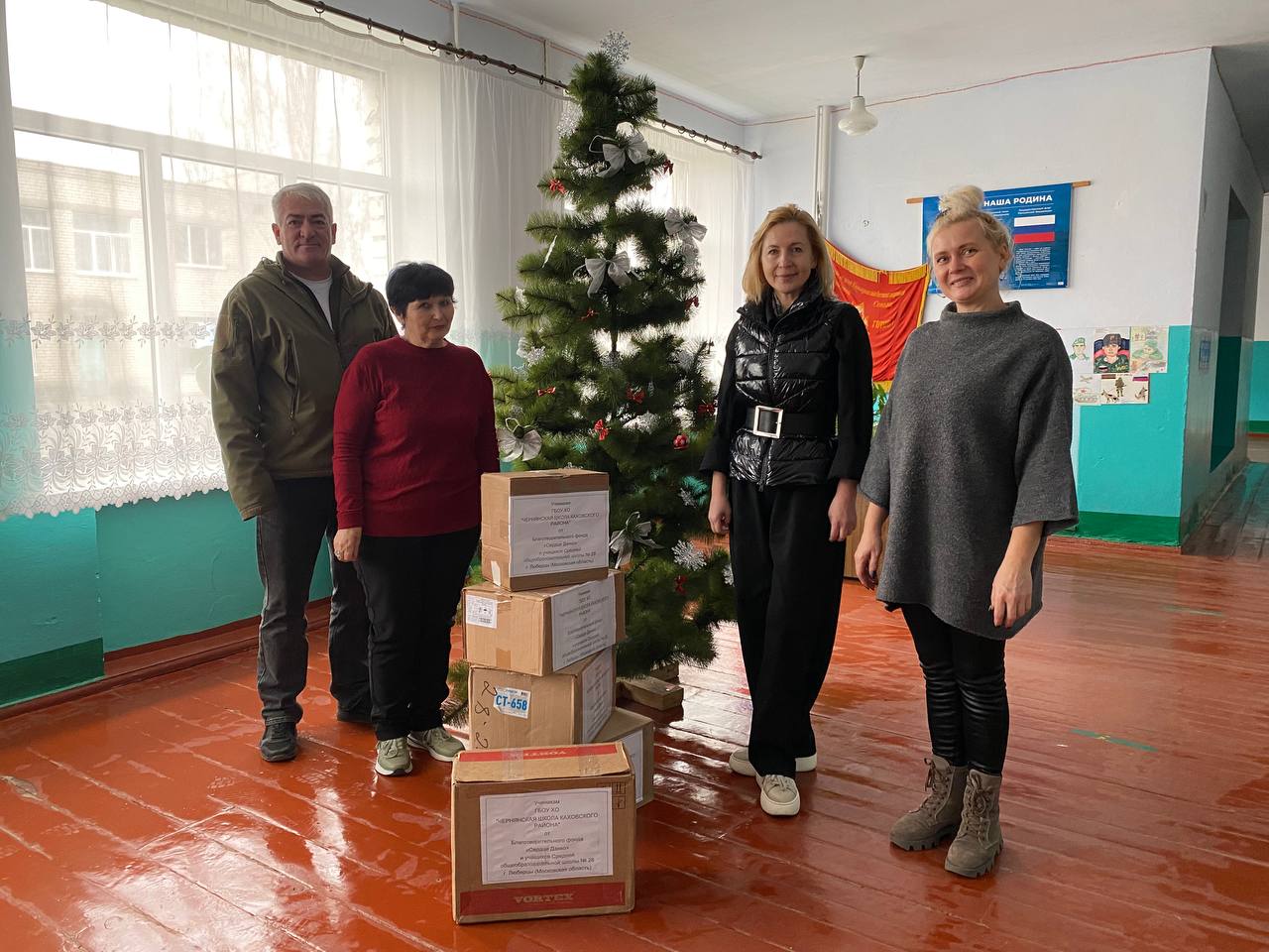 Первый заместитель и заместитель Председателя Херсонской областной Думы Елена Дмитрук и Павел Тропкин в ходе рабочей поездки передали гуманитарную помощь в Чернянскую школу прифронтового Каховского округа из Москвы от Единой России и Благотворительного фонда «Сердце Данко».