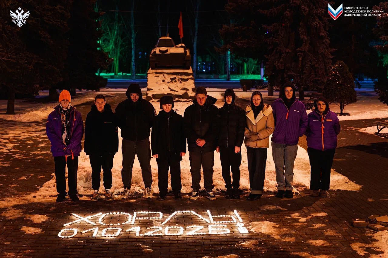 Активисты молодёжных движений Запорожской области провели памятную акцию в честь жертв обстрела Херсонской области в новогоднюю ночь. На территории Мемориального кладбища участники выложили из зажжённых свечей надпись «ХОРЛЫ 01.01.2026» и оставили детские игрушки и сладости.