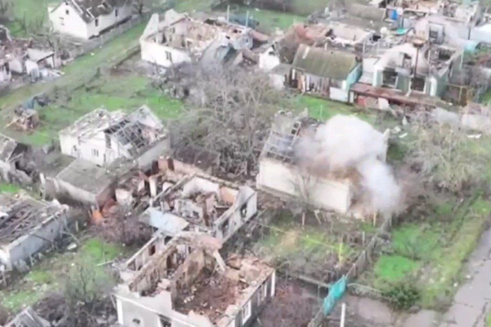 В ходе разведки было выявлено местоположение группы украинских военнослужащих, скрывавшихся в частном доме. Точными ударами дронов операторы сначала обрушили кровлю строения, блокируя выходы, после чего полностью ликвидировали цель повторным попаданием.