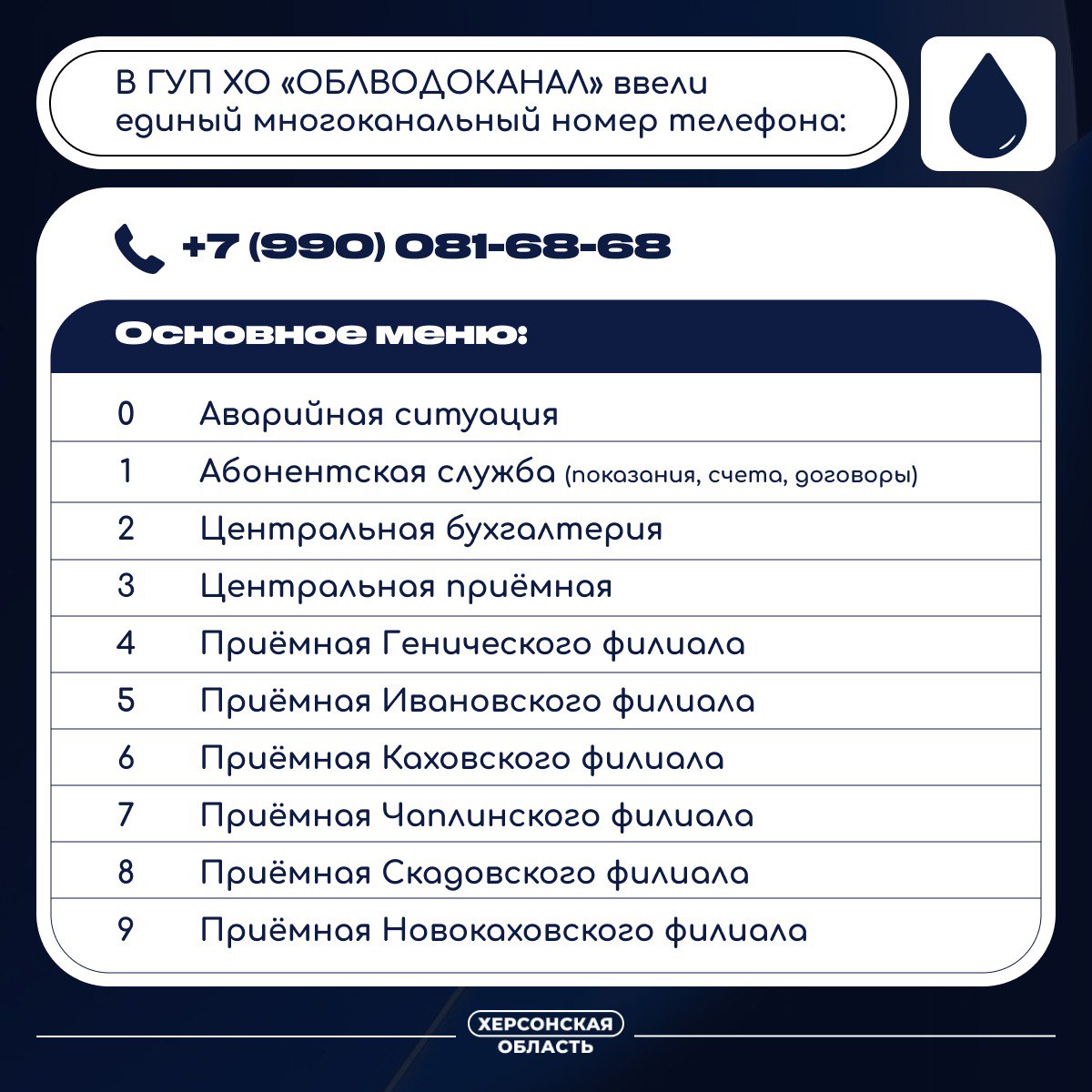 «Облводоканал» Херсонской области перешёл на единый многоканальный номер телефона