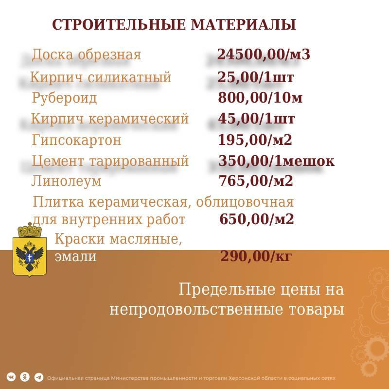 С 19 января 2026 года на территории Херсонской области вступают в силу новые предельно допустимые розничные цены на ряд продовольственных и непродовольственных товаров. Перечень товаров и цен утверждён приказом Министерства промышленности и торговли Херсонской области.