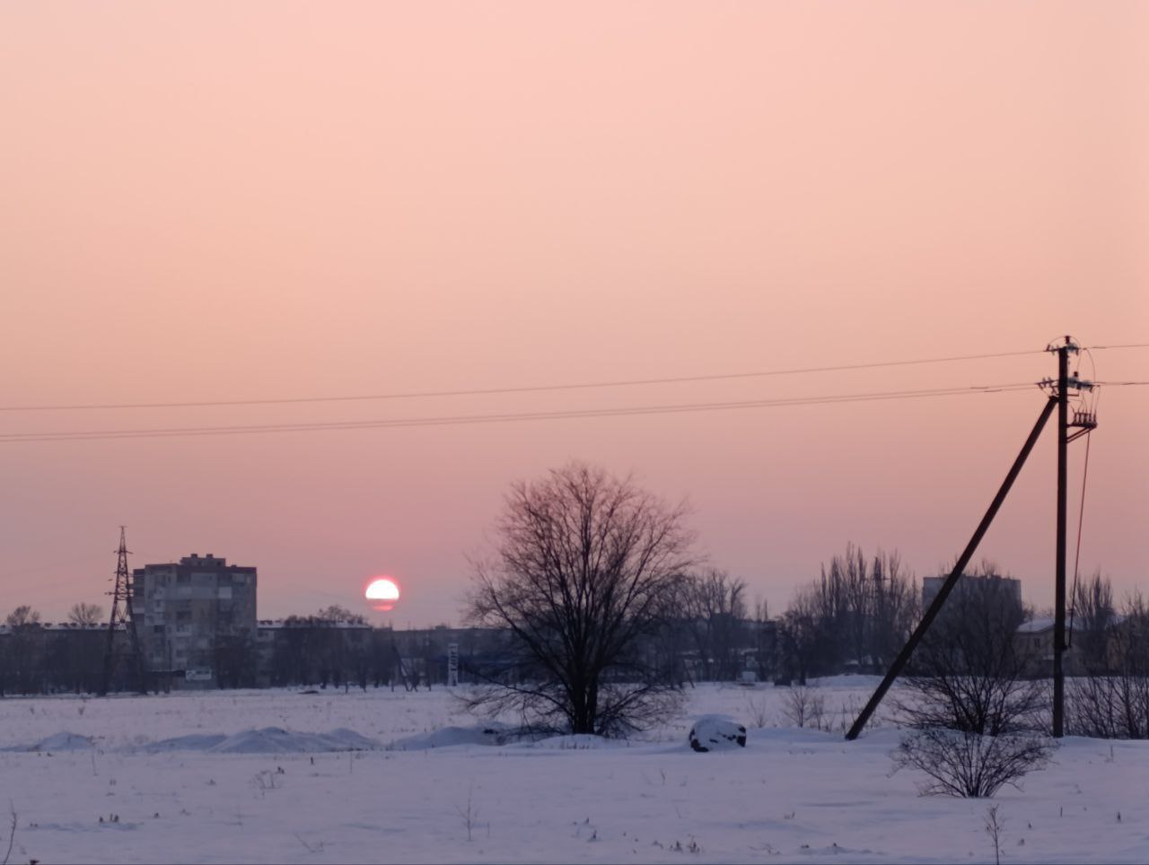 Любуемся снежным закатом - нечастым явлением Каховской зимы.