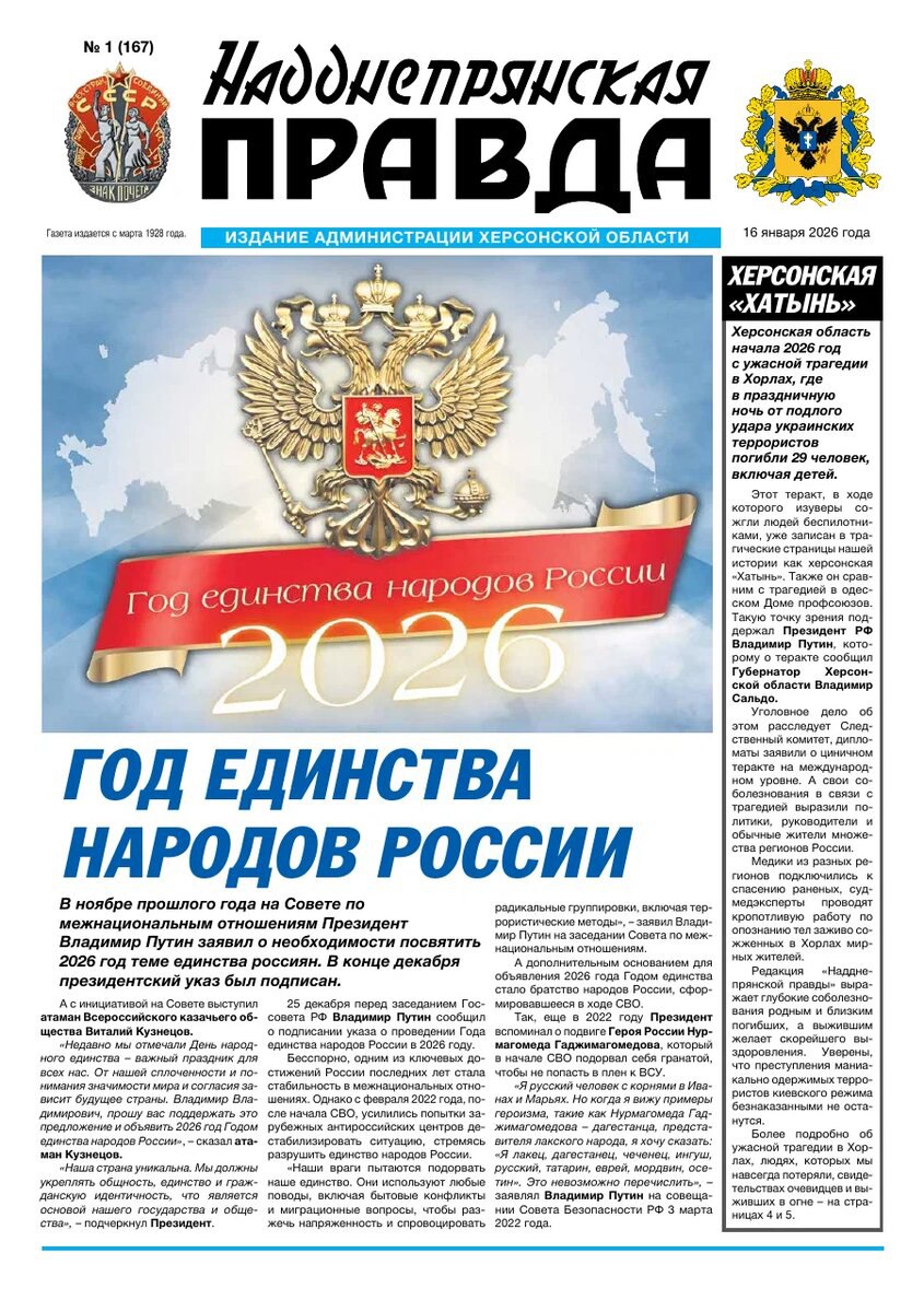 2026 год объявлен Годом единства народов России — указ президента, направленный на укрепление межнационального согласия, стр. 1.