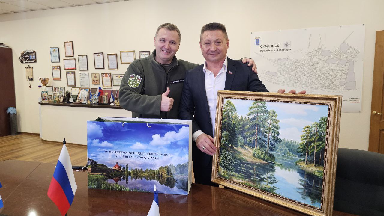 В знак добрых намерений и начала партнёрства гости преподнесли Александру Дудке символический подарок — картину с живописным лесным пейзажем, который олицетворяет природную красоту и богатство Ленинградской области.
