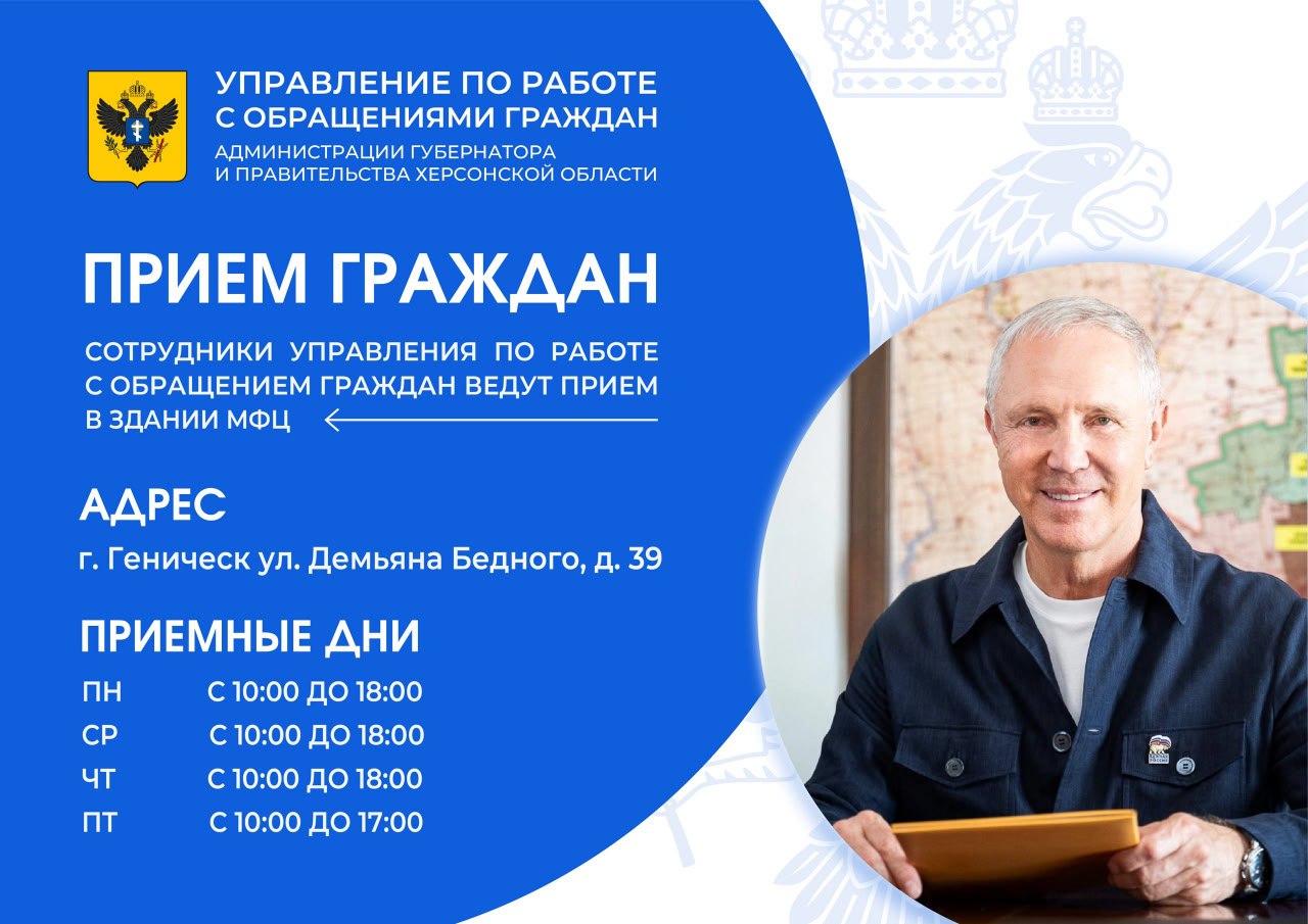 Сотрудники ведомства ведут приём в здании МФЦ Геническа по адресу: улица Демьяна Бедного, дом 39.
