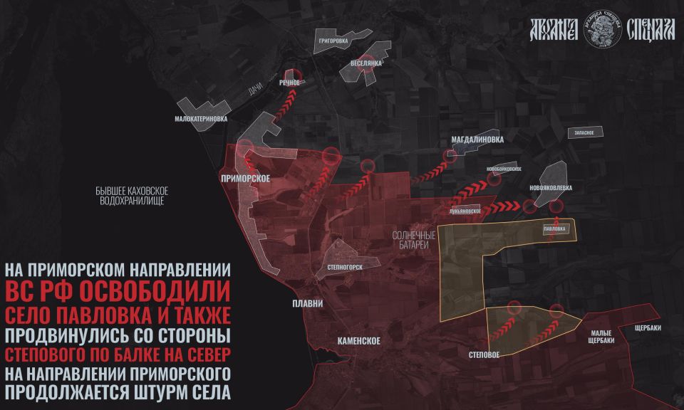 Там наши войска на днях освободили маленькое село Павловка. Перед этим нашим войскам удалось наконец-то зачистить посадки и балку севернее Степового.