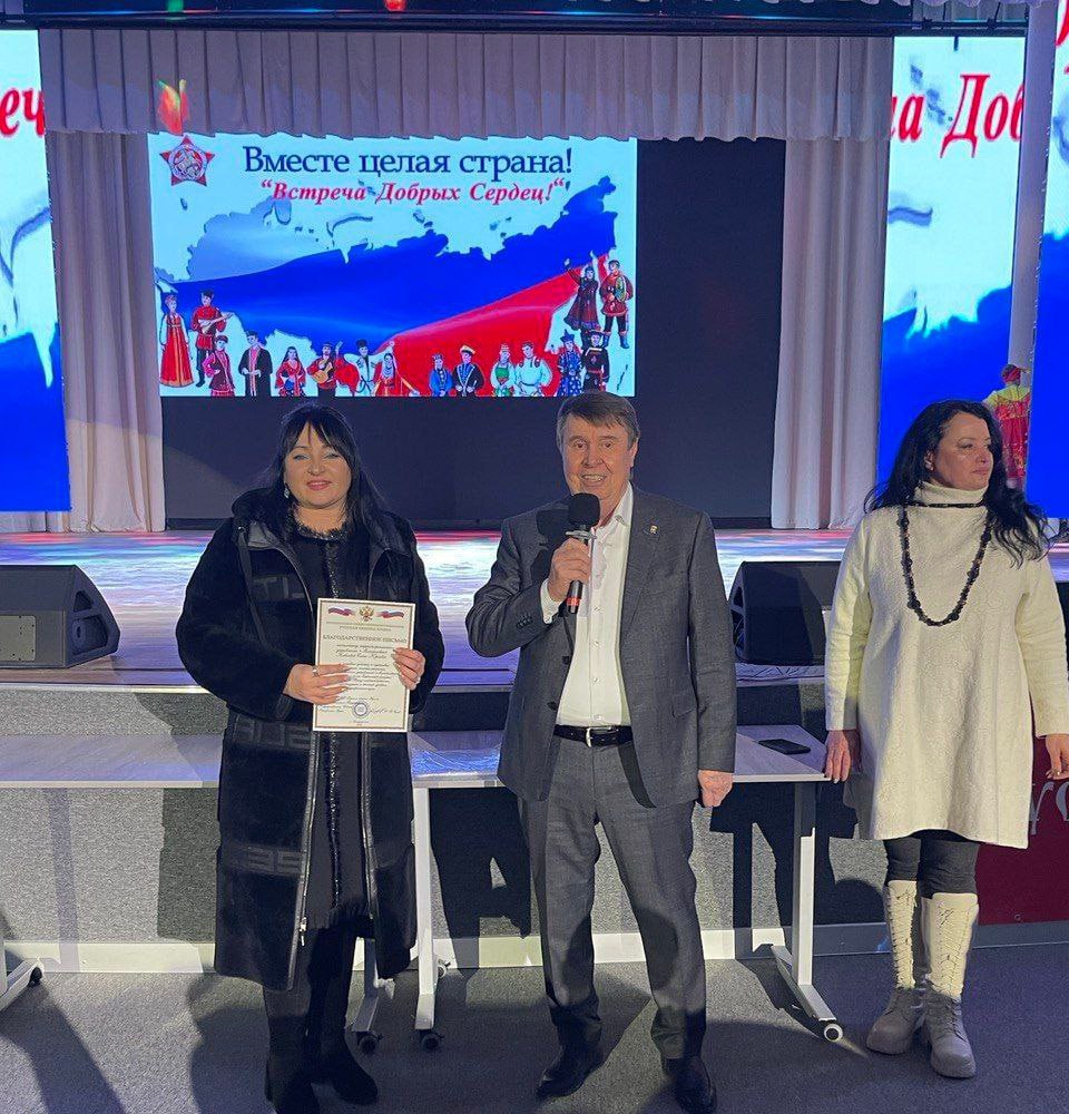 За системную работу по организации добровольческой деятельности Сергей Цеков, председатель Русской общины Крыма и член Совета Федерации, вручил Елене Павловой благодарственное письмо.