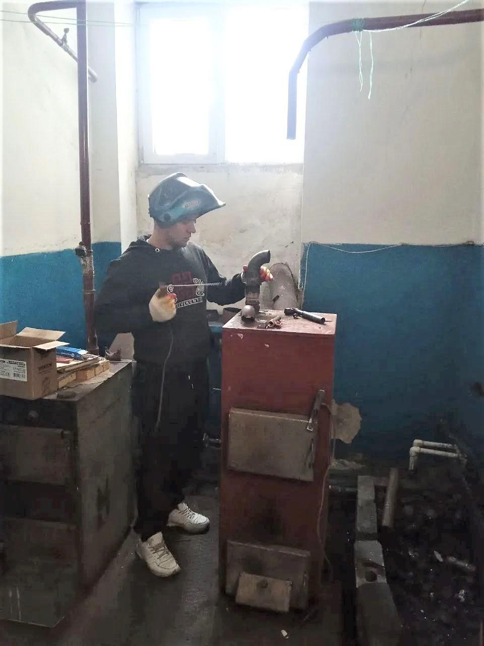 Специалисты смонтировали радиаторы, установили дополнительные регистры в учебных классах и провели необходимый ремонт в санузлах. Также был установлен и запущен котел с расширительным баком.