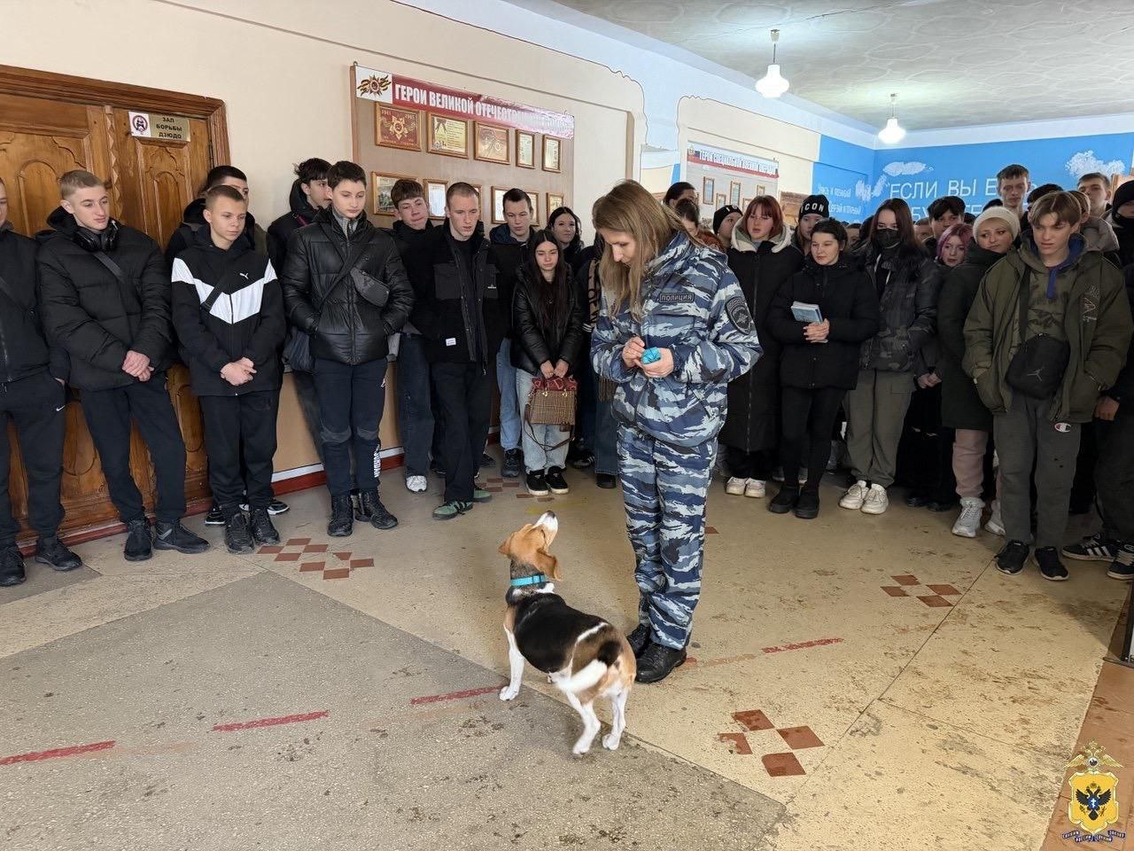 Кинологи продемонстрировали работу служебных собак по поиску опасных и запрещенных веществ. Инспекторы ДПС рассказали об особенностях своей службы и дали студентам возможность побывать в патрульной машине, ознакомив с техническим оснащением.