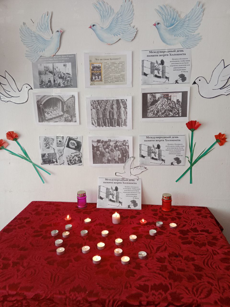 Именно 27 января 1945г советские солдаты провели успешную операцию по освобождению крупнейшего нацистского " лагеря" Освенцим - Биркенау ". По не которым данным в этом " лагере смерти " погибло более 1,5 миллионов человек. Очень важно сохранить память об ужасных событиях ушедших лет . В Нижнеторгаивском Доме Культуры была оформлена " Стена памяти" приуроченная ко дню памяти жертв Холокоста.