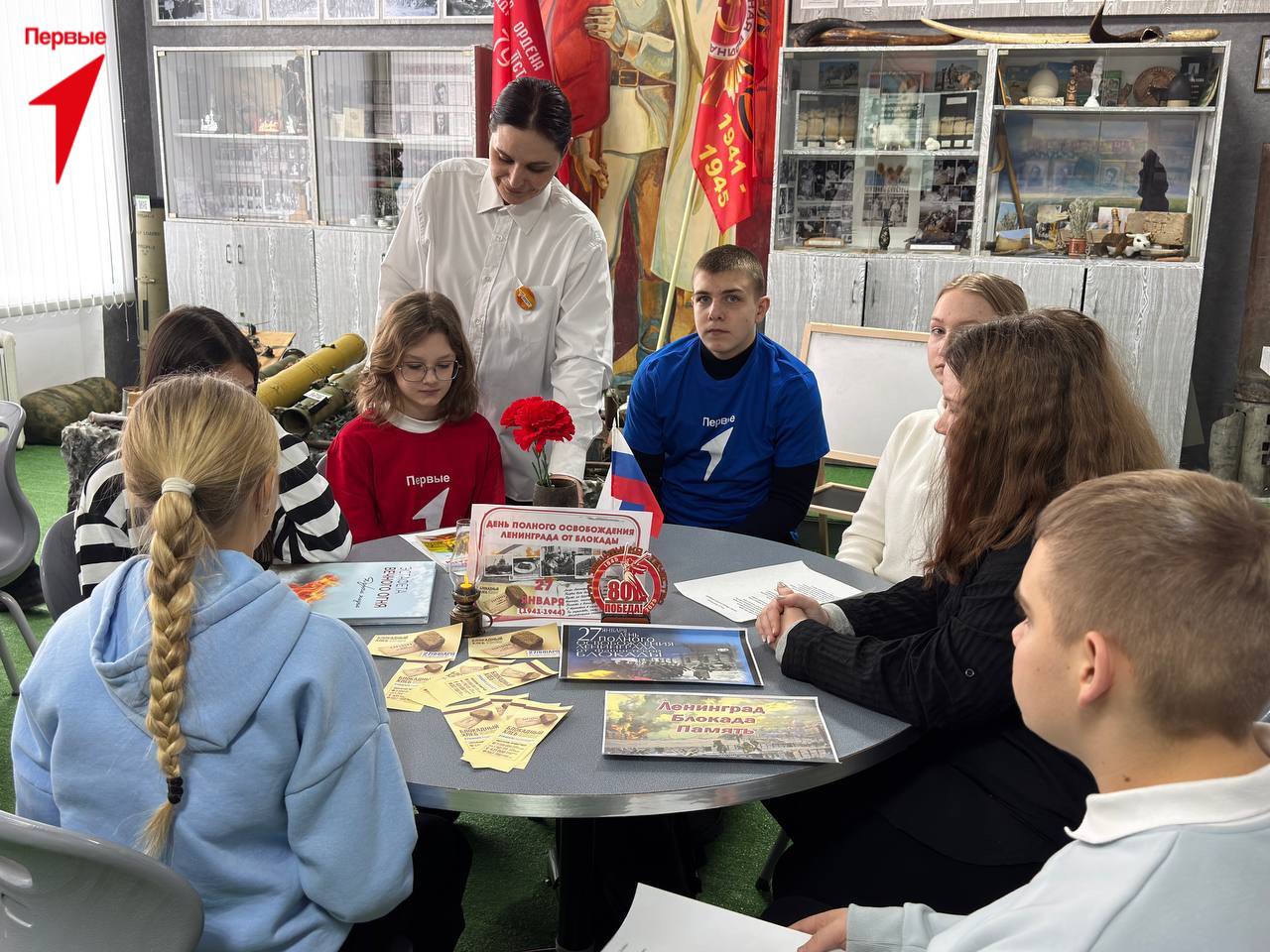 Активисты Движения Первых совместно с советником директора по воспитанию Еленой Гавриловой провели уроки памяти, посвященные снятию блокады Ленинграда.