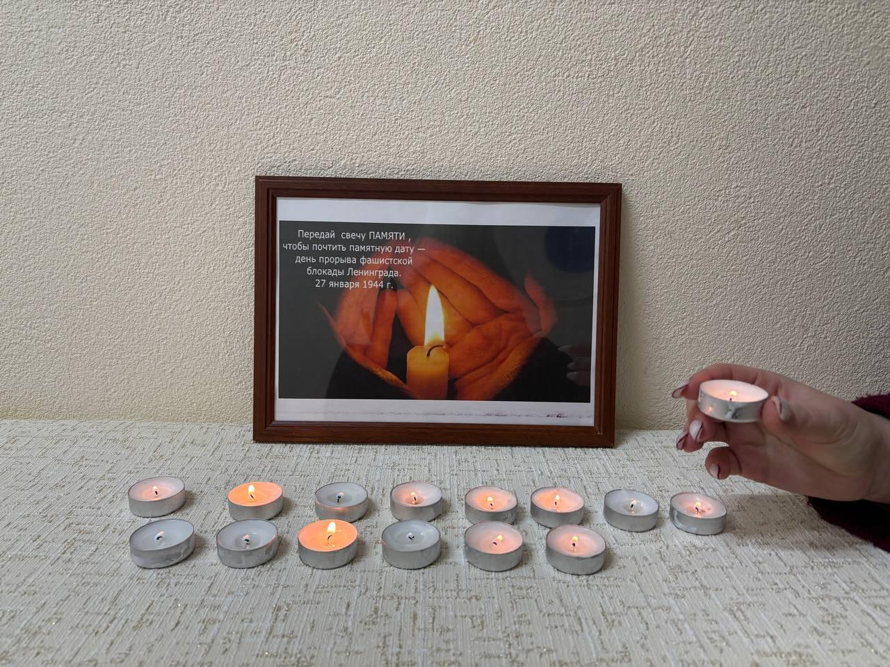 Сотрудники администрации округа присоединились к Всероссийской акции «Свеча памяти». Зажгли свечи в честь подвигов героев, в память о ленинградцах, не доживших до Победы, и в память о каждом, кто стал жертвой бесчеловечной идеологии Холокоста.