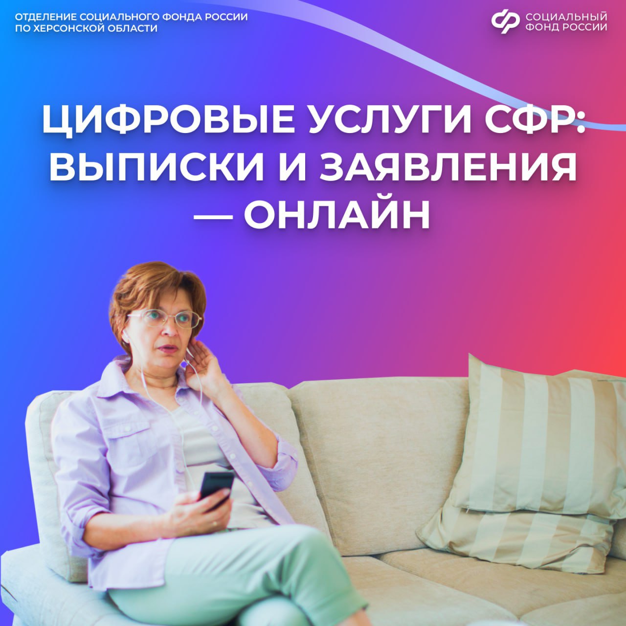 ОСФР по Херсонской области напоминает о возможностях получать ключевые услуги дистанционно, в удобное для вас время. Для этого нужен только подтвержденный аккаунт на портале госуслуг (https://www.gosuslugi.ru/).