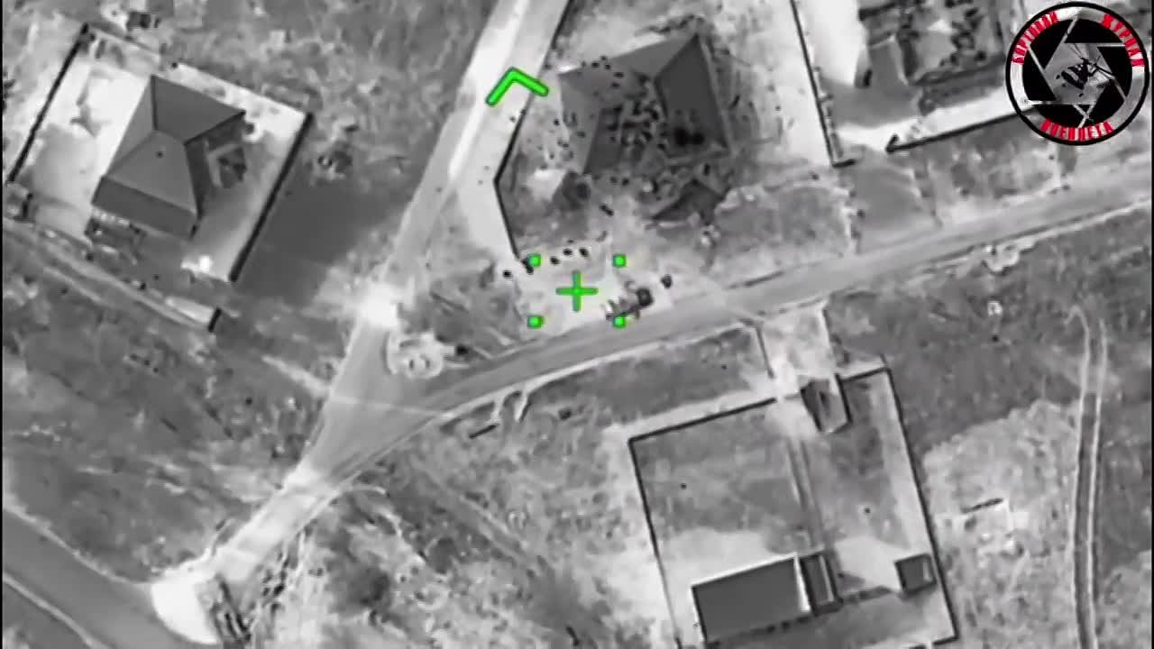 Кадры работы бпла «Форпост-РУ» корректируемыми боеприпасами по ПВД противника.