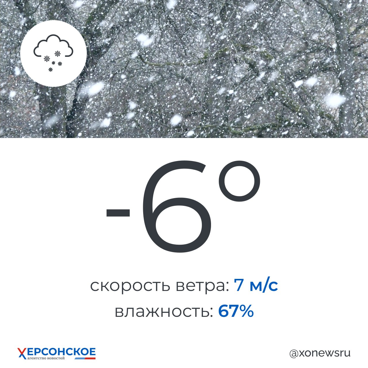 Пасмурная с небольшим снегом погода будет в Херсонской области в воскресенье