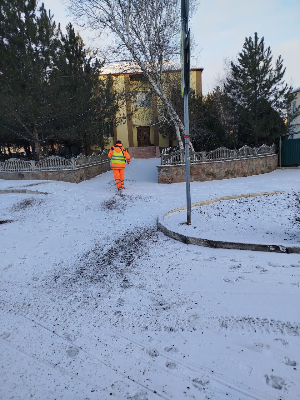 Сотрудники НЖКП провели работу по посыпке песком обледенелых участков в пгт. Новотроицком.