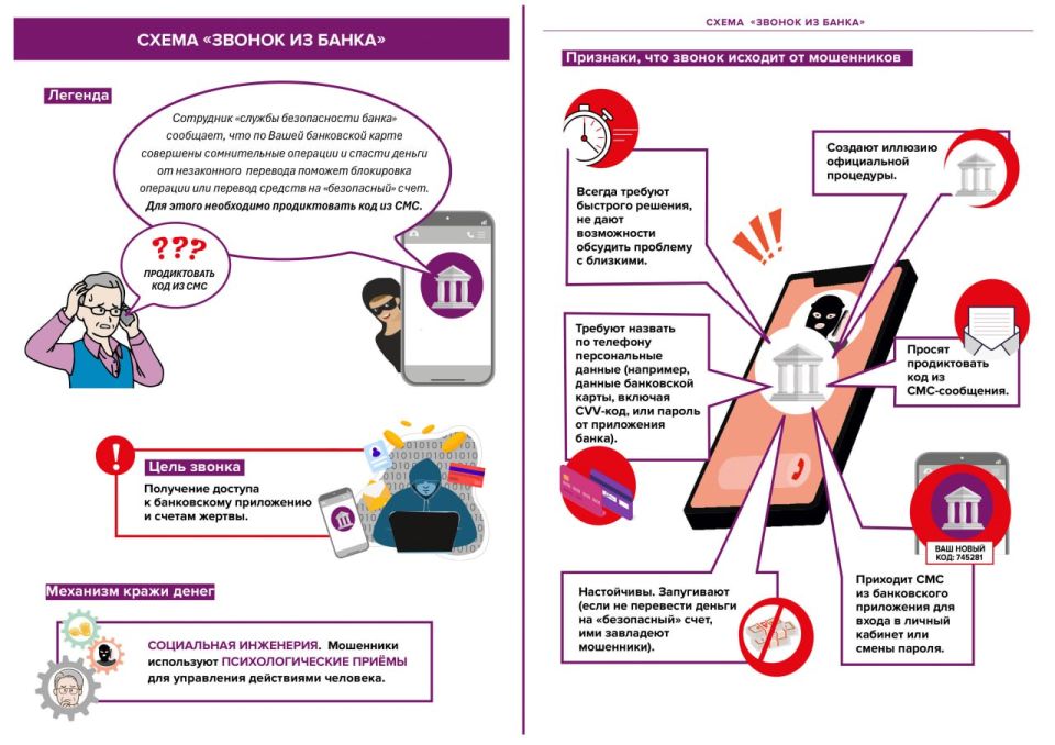 Банк НИКОГДА не просит назвать данные карты, CVV или коды из SMS.