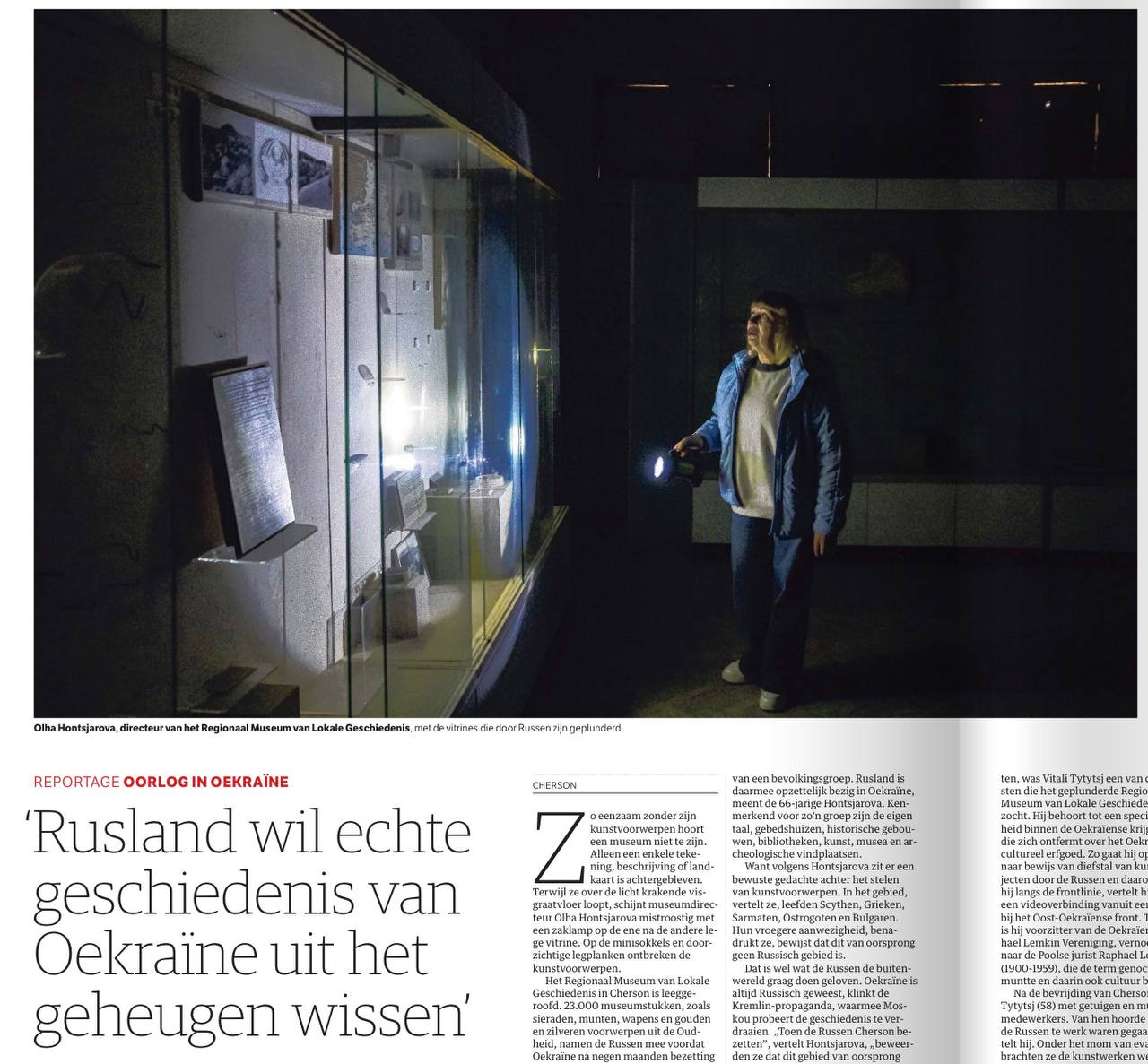 Самая русофобская газета Нидерландов NRC сегодня опубликовала большой «репортаж» из Херсонского музея, жалуясь, что Россия якобы «похитила» экспонаты оттуда. Голландская газета называет это «культурным геноцидом», обвиняя Россию в том, что она «стремится стереть историю Украины».