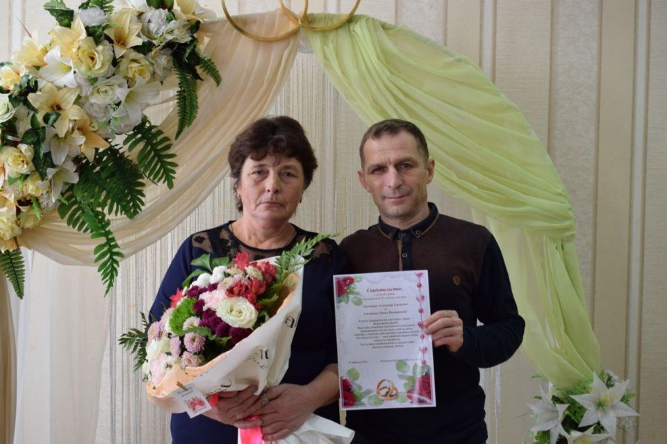 Сотрудники ЗАГС торжественно поздравили супругов, вручив им свидетельство о знаменательной дате и памятный подарок. В знак нерушимого союза им были переданы две жемчужины, призванные стать драгоценным талисманом верности и любви, бережно хранимым в их семье.