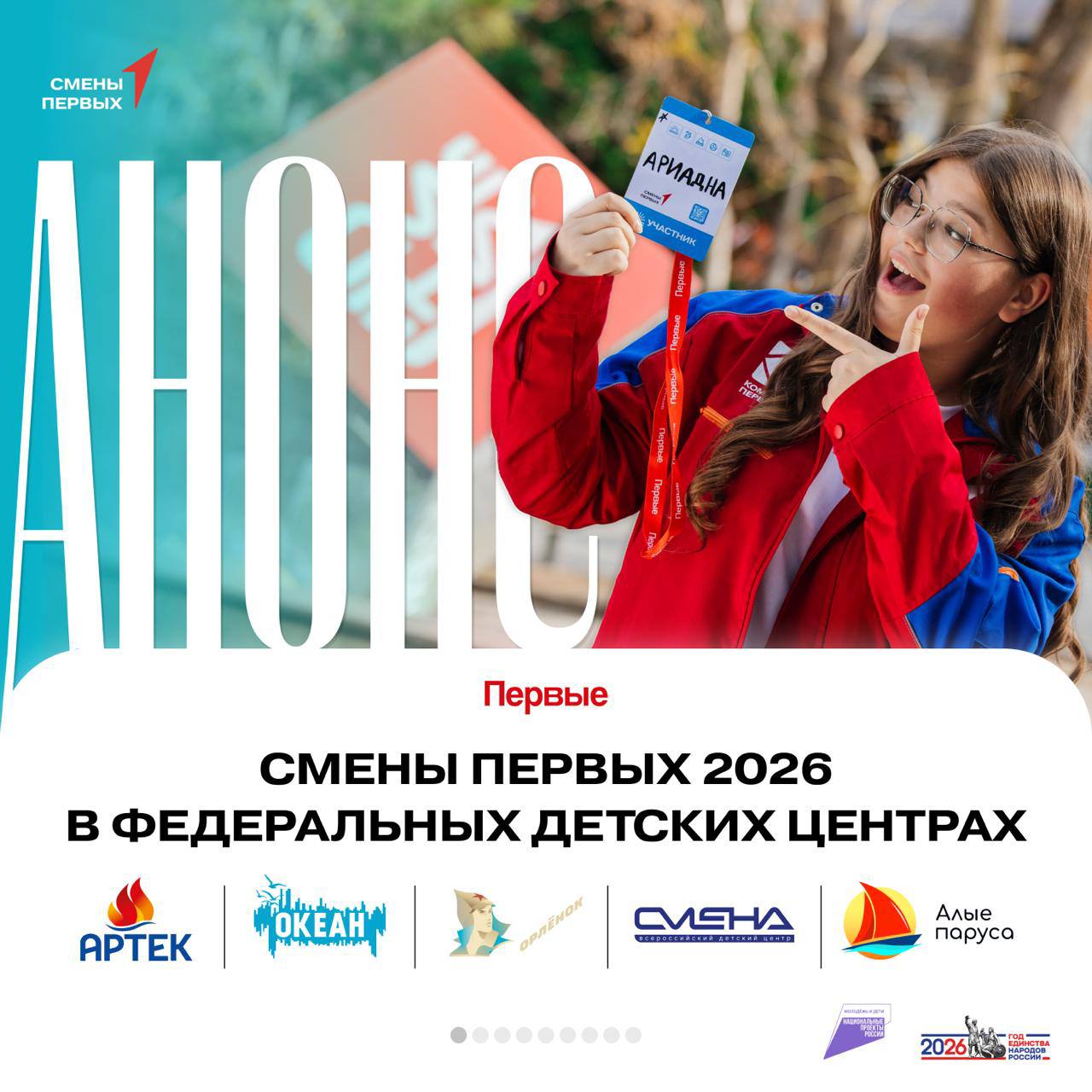 Напомню, принять участие в федеральных Сменах Первых можно только один раз в календарный год по конкурсному отбору на сайте будьвдвижении.рф!