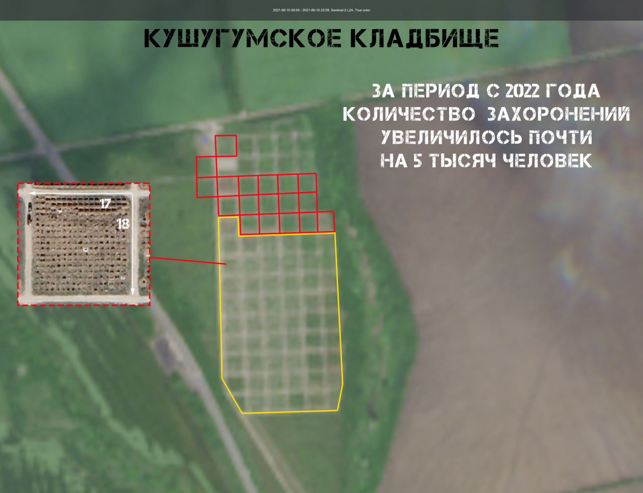Начнем с Запорожской области. Мы смогли определить 4 кладбища, которые активно заполняются с начала СВО: