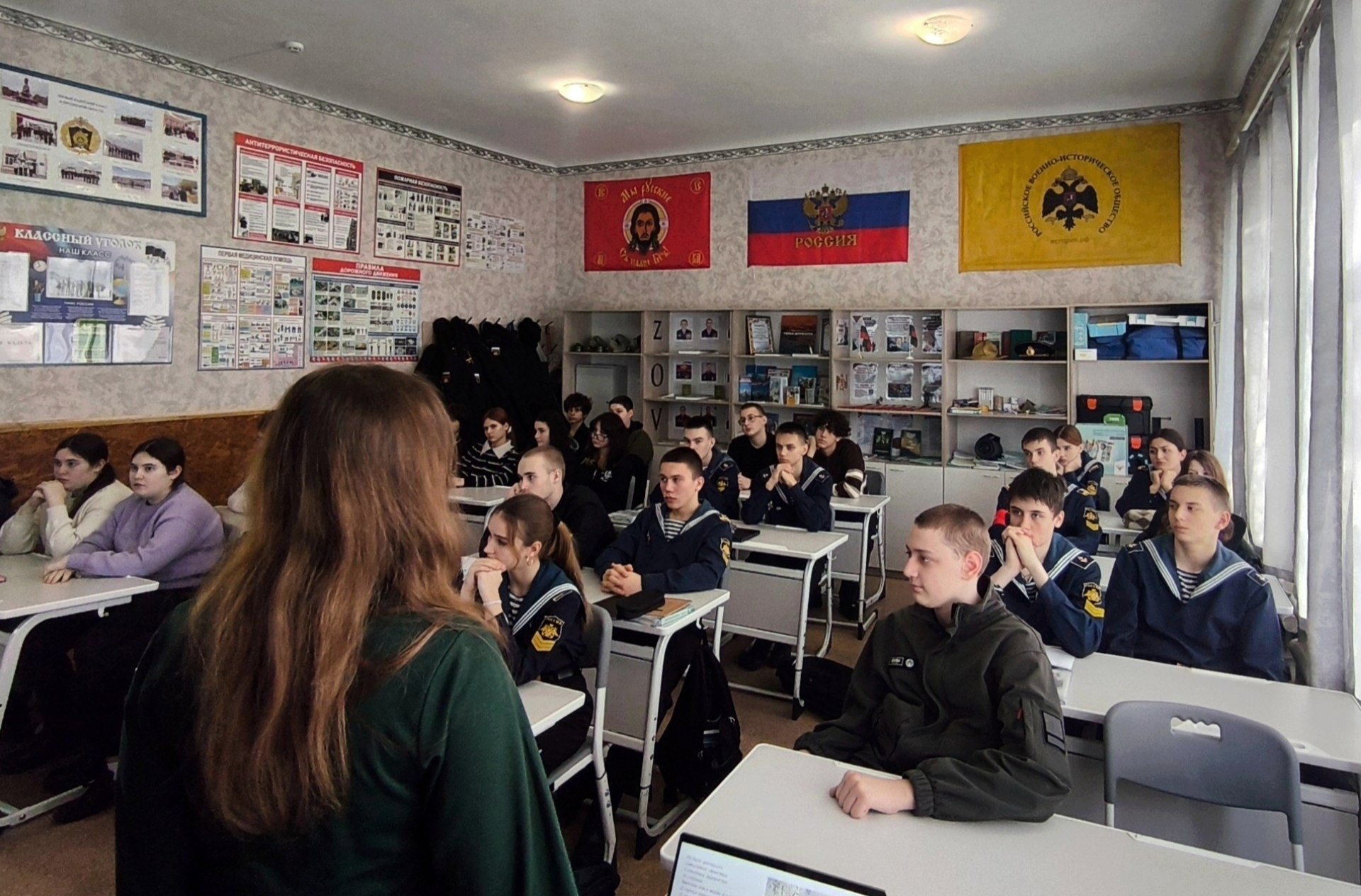 Первый секретарь Херсонского областного комитета ЛКСМ РФ Шабанова Амина и второй секретарь – Никита Эндаков провели встречи с учениками школы и рассказали непростую историю этой памятной даты.