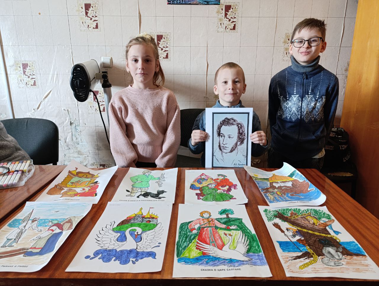 После интеллектуальной разминки ребята приняли участие в творческом мастер-классе. Дети раскрашивали иллюстрации к известным произведениям: «Сказке о царе Салтане», «Сказке о рыбаке и рыбке» и поэме «Руслан и Людмила». Это позволило каждому участнику выразить своё восприятие героев и почувствовать атмосферу эпохи, описанной поэтом.