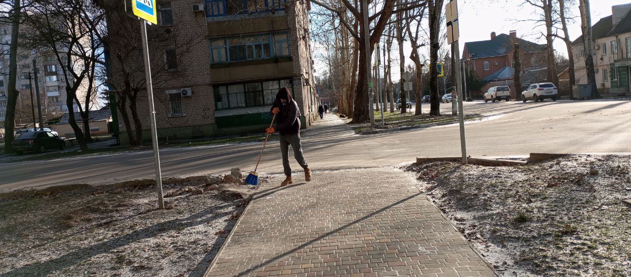 Несмотря на сложные погодные условия и низкие температуры, сотрудники муниципального бюджетного учреждения «Джарылгач» продолжают плановые работы по уборке и благоустройству улиц города Скадовска.