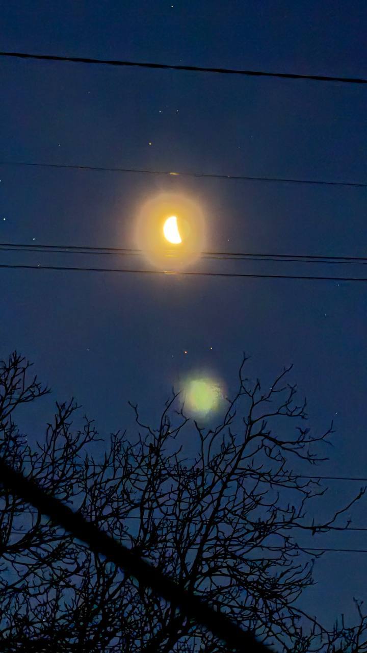 В предрассветный час месяц на небосводе больше похож на корабль космических пришельцев. Кажется, что еще чуть-чуть, он спустится на землю и... инопланетные гости напомнят, что сегодня еще только среда и надо идти на работу.